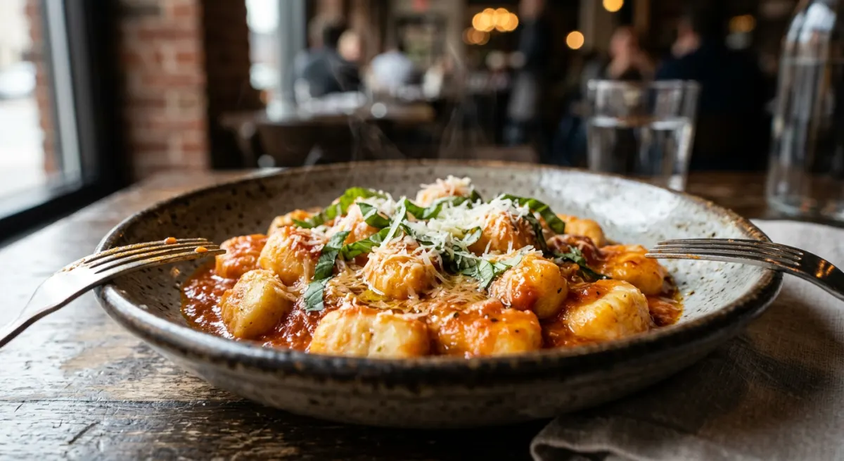 Ethereally light potato dumplings — made from floury Russet potatoes, a measured hand of flour, and a single egg yolk — that cook in seconds and dissolve on the tongue, nothing like the dense, gummy gnocchi of shortcuts and shortcuts alone. Dressed in a slow-simmered, velvety San Marzano tomato sauce infused with sweet basil and finished with Parmigiano-Reggiano, this is Italian comfort cooking in its purest form.